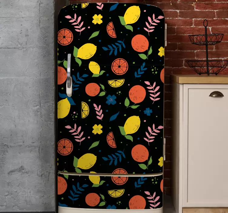 Apportez une touche de fraîcheur et de couleur à votre réfrigérateur avec notre Sticker frigo couverture à motifs de fruits. Ce design vibrant et coloré, mettant en avant des fruits tels que des oranges et des citrons, évoque la nature et le floral, transformant votre espace en une véritable œuvre d'art. L'illustration délicate et joyeuse ajoutera une ambiance estivale à votre cuisine, tout en égayant votre expérience quotidienne !