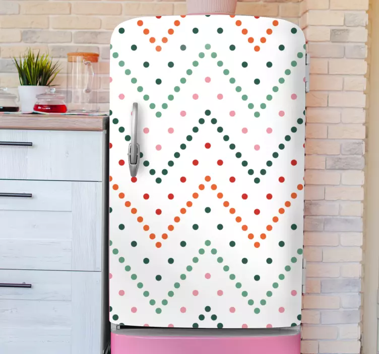 Ajoutez une touche de modernité à votre cuisine avec notre Sticker frigo motif chevrons vibrants ! Son design coloré et dynamique, mêlant des motifs de zigzag et de pois, apportera une ambiance joyeuse à votre réfrigérateur. Les nuances multicolores s'entrelacent pour créer un effet visuel captivant qui attire l'œil et réveille l'espace de manière ludique. Ce sticker est parfait pour ceux qui souhaitent égayer leur frigo avec un style contemporain tout en ajoutant une note de fun à leur décoration !