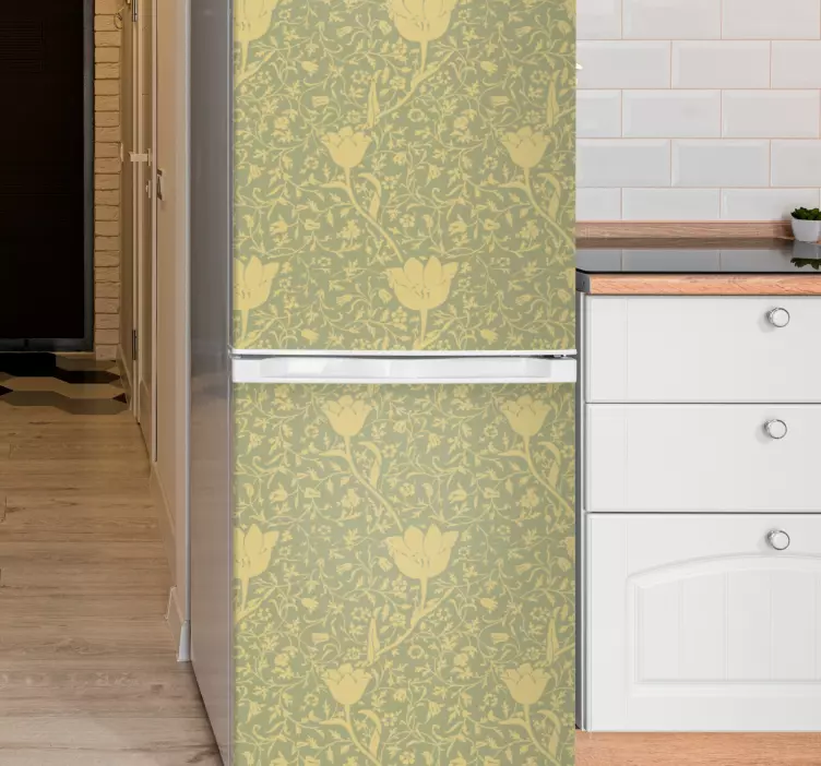 Découvrez notre Sticker frigo motifs floraux élégants, un véritable chef-d'œuvre qui apporte une touche de nature dans votre cuisine. Avec son design doré et ses motifs floraux en vert et jaune, ce modèle unique embellit votre réfrigérateur tout en ajoutant une atmosphère élégante à votre intérieur. Laissez-vous séduire par la beauté des fleurs qui égayeront vos journées !