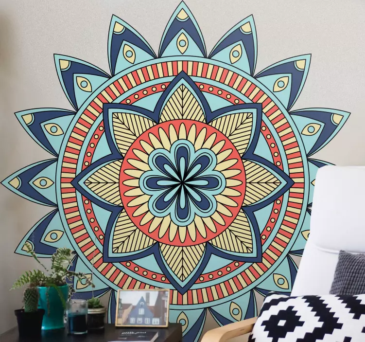 Découvrez notre Sticker géométrique motif mandala vif, une véritable œuvre d'art qui embellit vos espaces avec son design floral, mandala et géométrique. Cette illustration colorée apporte une touche de créativité et d'originalité à votre décoration, transformant chaque mur en une galerie d'art vivante.