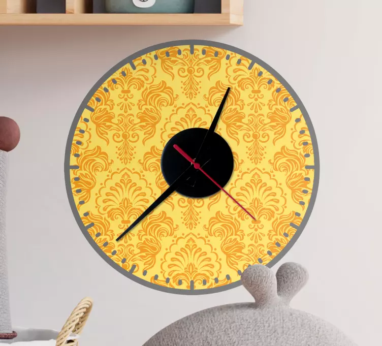 Découvrez notre Sticker horloge élégant motif floral, un véritable bijou pour vos murs ! Avec son design graphique damassé, ce modèle allie l'élégance d'une horloge à un motif floral délicat. Les teintes jaunes vives apportent une touche de fraîcheur tout en permettant de créer une ambiance chaleureuse dans n'importe quelle pièce. Ce sticker, représentant une belle montre au style raffiné, saura séduire tous les amateurs de décoration intérieure.