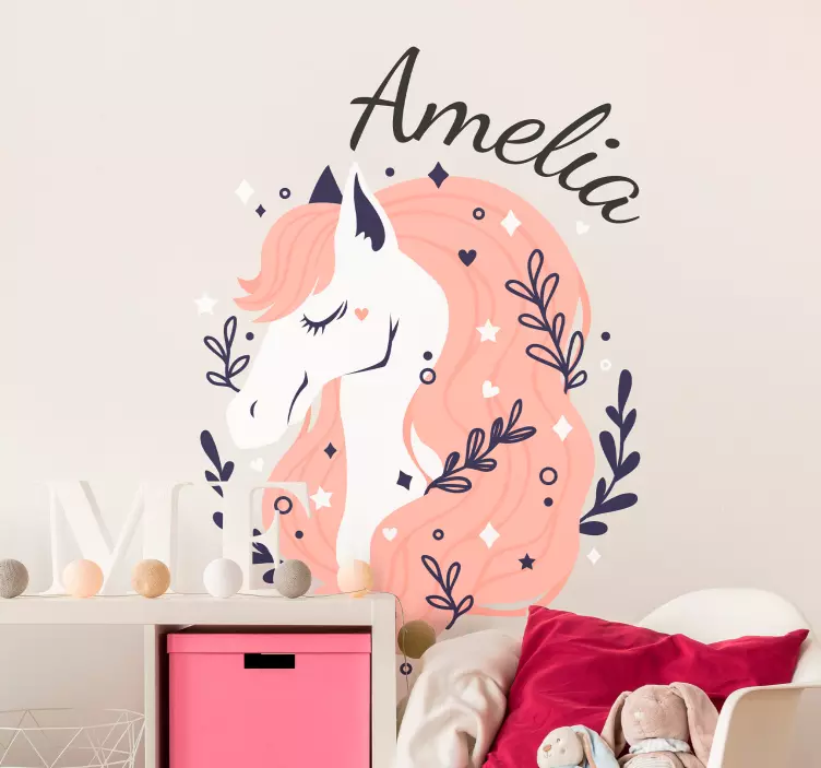 Référence: A46837Avec un charmant unicorn au pelage fluide et des accents floraux délicats, ce design apporte une touche fantaisiste à l'espace d'un enfant. Personnalisable pour une touche personnelle supplémentaire, il capture un sentiment de magie et de chaleur, le rendant idéal pour les chambres de bébé ou les salles de jeux.