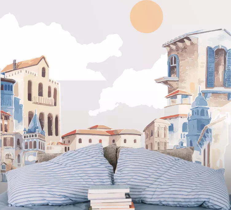 Découvrez notre Sticker monde paysage urbain charmant, un véritable chef-d'œuvre qui capture l'essence des paysages urbains en alliant des éléments de ville et de village. Avec ses touches de peinture aquarelle, ce design évoque la chaleur du soleil sur l'architecture tout en jouant avec des tons chauds et des nuances de bleu. Laissez-vous emporter par ce paysage urbain qui ajoutera une touche artistique à votre espace !