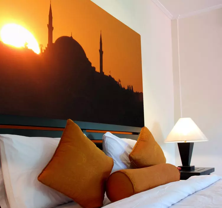 Découvrez notre magnifique Sticker monde silhouette de coucher de soleil à istanbul, un design captivant qui capture la beauté de la mosquée emblématique, des minarets majestueux et d'un paysage urbain enchanteur, le tout sous un ciel illuminé par un coucher de soleil éclatant. Ce motif artistique évoque une ambiance religieuse et culturelle unique, tout en ajoutant une touche de sérénité à votre intérieur.