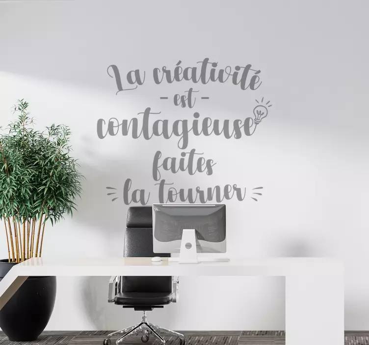 Référence: A39372Le Sticker motivation la créativité est contagieuse d'albert einstein est un produit graphiquement inspirant, mettant en valeur la créativité, la motivation et la citation. Parfait pour décorer n'importe quel espace, ce produit est une véritable source d'inspiration.