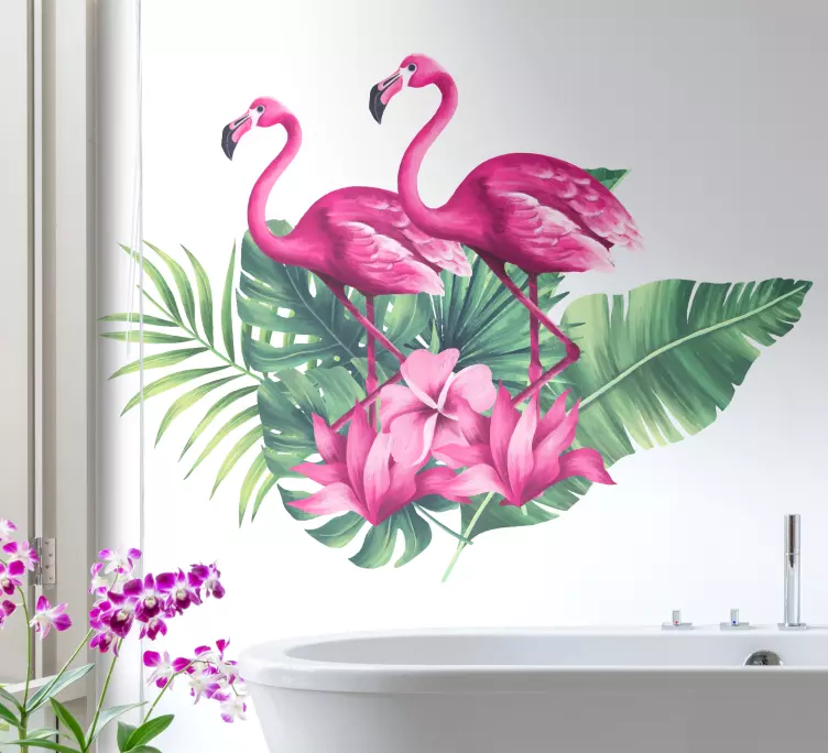 Sticker oiseaux flamants et feuillage