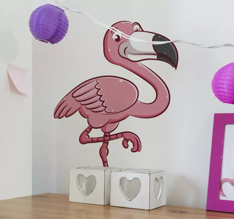 Offrez une touche joyeuse et amusante à la chambre des enfants avec notre Sticker oiseaux personnage flamant rose mignon. Ce design en dessin animé arbore un flamant rose qui apportera une ambiance ludique et un sourire sur le visage de vos petits. Il incarne la légèreté et le bonheur, tout en étant un adorable oiseau qui égayera n'importe quel espace.
