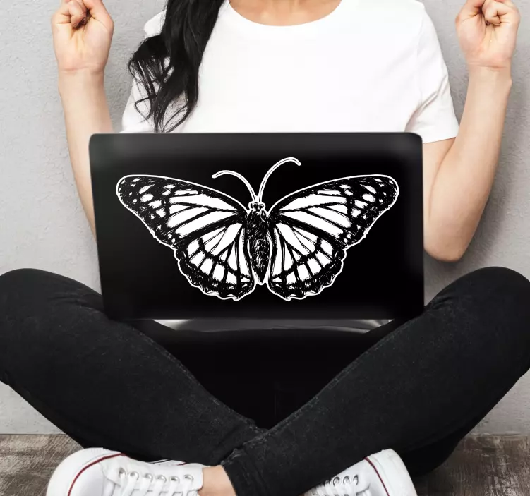Découvrez notre Sticker ordinateur portable Œuvre de papillon gracieux, un magnifique motif en noir et blanc qui illustre la beauté du papillon monarque. Ce design monochrome évoque la nature d'une manière artistique et symbolique, apportant une touche d'élégance à votre ordinateur portable. C'est une véritable œuvre d'art qui transformera votre espace de travail en un havre de créativité !