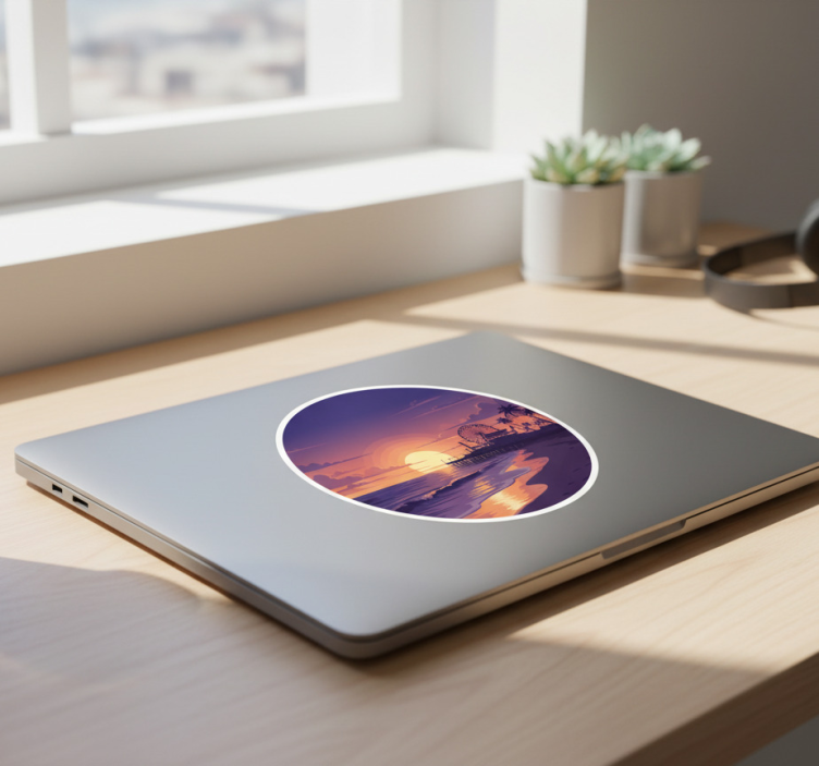 Sticker ordinateur scène de coucher de soleil violet côtier