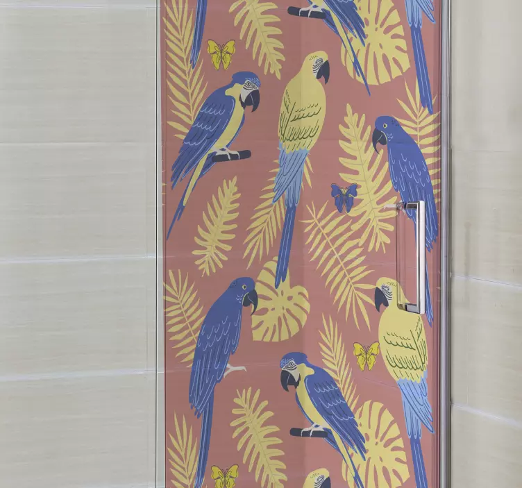 Sticker paroi de douche motif perroquets colorés