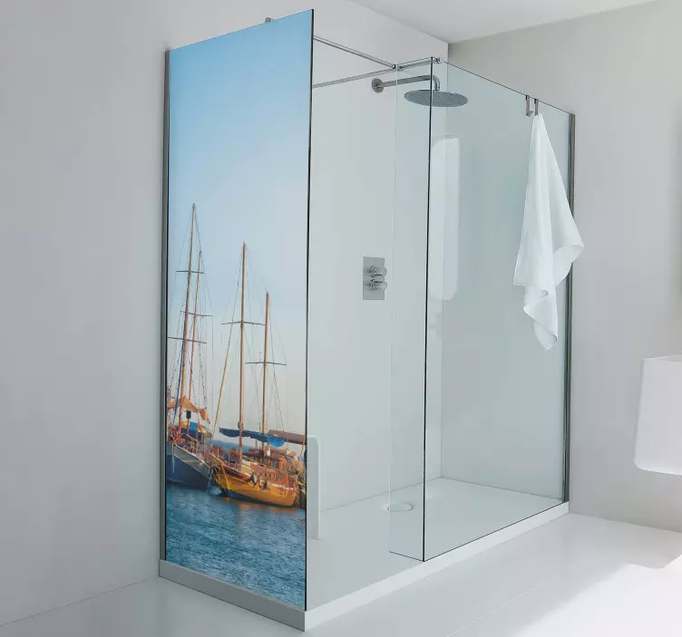Apportez une touche marine à votre salle de bain avec notre Sticker paroi de douche scène de voiliers. Ce design captivant présente des bateaux voguant paisiblement dans un port, entourés d'un quai accueillant, évoquant une ambiance nautique et marin. La photographie soigneusement choisie fait de chaque douche un moment d'évasion, tout en ajoutant une note rafraîchissante à l'eau qui s'écoule.
