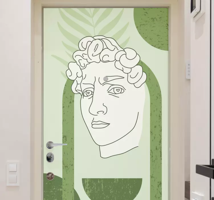 Découvrez notre Sticker porte œuvre contemporaine de visage, une pièce unique qui marie harmonieusement l'art moderne à la décoration intérieure. Inspiré par la célèbre statue de David, cet autocollant présente une sculpture minimaliste en dessin au trait, enveloppée de tons verts et de formes abstraites. Son design moderne apportera une touche d'élégance et de créativité à votre porte, transformant un espace ordinaire en un véritable chef-d'œuvre!