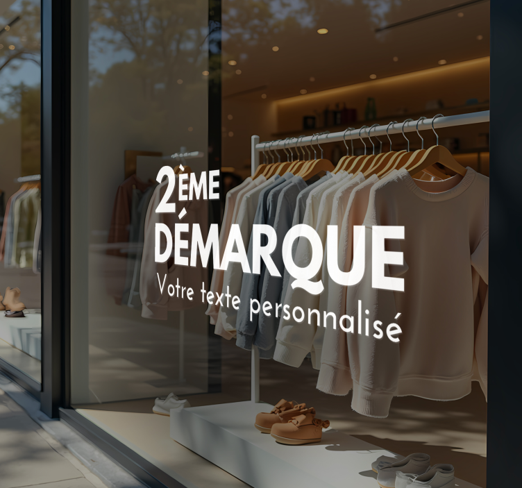 Le Sticker soldes 2ème démarque personnalisé est un véritable atout pour votre décoration commerciale. En illuminant votre espace de vente avec des messages clairs sur vos promotions, il incite les clients à découvrir vos offres exceptionnelles. Ce sticker peut transformer n'importe quel point de vente en un lieu vivant et attractif, stimulant ainsi l'intérêt et l'achat.