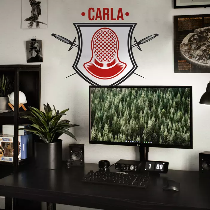 Retrouvez ce magnifique design dans la catégorie stickers muraux dans la sous-catégorie sport. Ou tout, simplement, écrivez dans la barre de recherche le mot escrime.