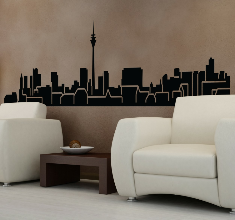 Découvrez notre magnifique Sticker villes et pays contours de villes élégants qui met en avant la ligne d'horizon de Düsseldorf en Allemagne. Avec un design urbain et moderne, chaque bâtiment est soigneusement dessiné pour apporter une touche d'élégance à votre espace. Laissez-vous séduire par ce motif unique qui transformera instantanément votre décoration intérieure.