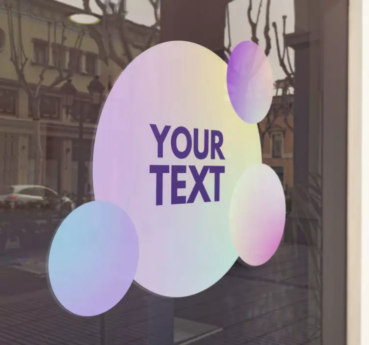 Transformez l'atmosphère de votre espace avec notre Sticker vitrine cercles de texte personnalisables. Ce design captivant allie des formes géométriques à des motifs abstraits, créant une ambiance moderne et fluide. Les cercles colorés et le texte personnalisé s'harmonisent parfaitement, apportant une touche unique à votre vitrine.