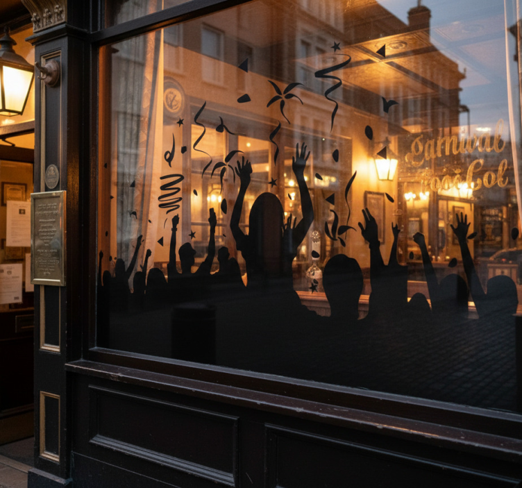 Référence: A53880Apportez une touche de joie et de couleur à votre espace avec notre sticker vitrine foule de carnaval festive. Ce design éclatant, orné de motifs festifs et de couleurs vives, évoque l'ambiance enjouée des carnavals, transformant n'importe quelle vitrine en un véritable spectacle visuel. Laissez-vous emporter par l'énergie contagieuse de ce sticker vitrine, qui saura captiver l'attention et ravir les passants.