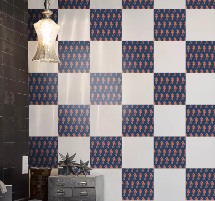 Référence: A47028Un motif captivant de la vie marine mettant en scène des hippocampes dans diverses orientations sur un fond bleu profond. Ce design embellit les espaces avec son thème aquatique ludique, idéal pour créer une ambiance sereine et vibrante rappelant les aventures océaniques.