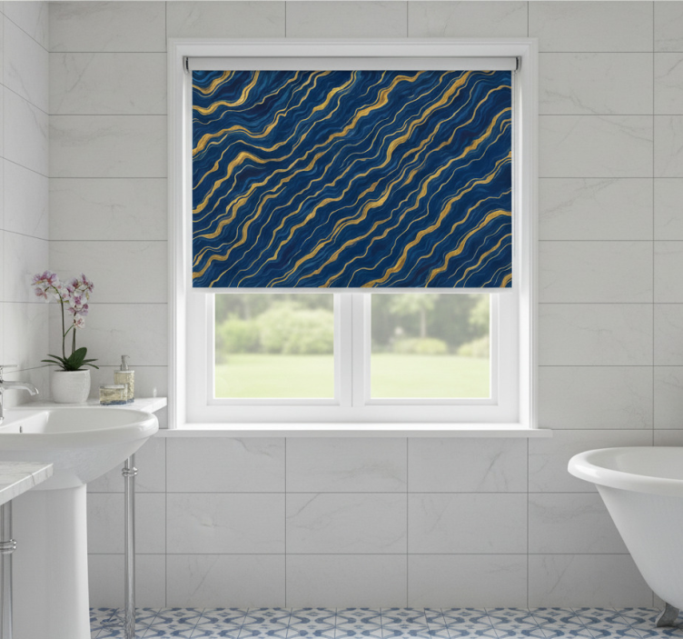 Store enrouleur bleu marbre bleu et or