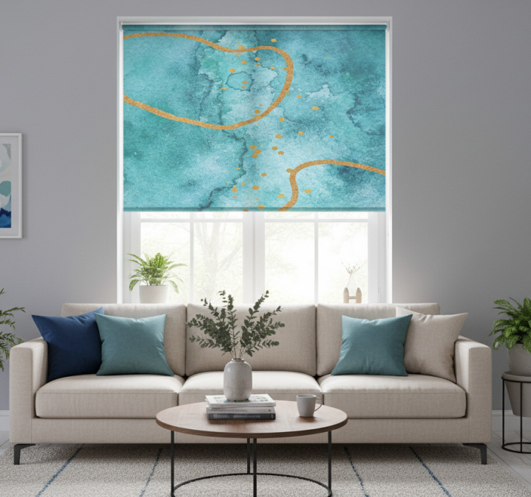 Référence: E8636Apportez une touche unique à votre espace avec notre store enrouleur bureau abstrait aquamarine et or. Ce design captivant, mêlant des nuances aquamarine et or, crée une atmosphère à la fois moderne et élégante. Ses motifs abstraits apportent une note artistique qui se marie parfaitement à tout type de décoration, tout en offrant une fonctionnalité sans compromis.