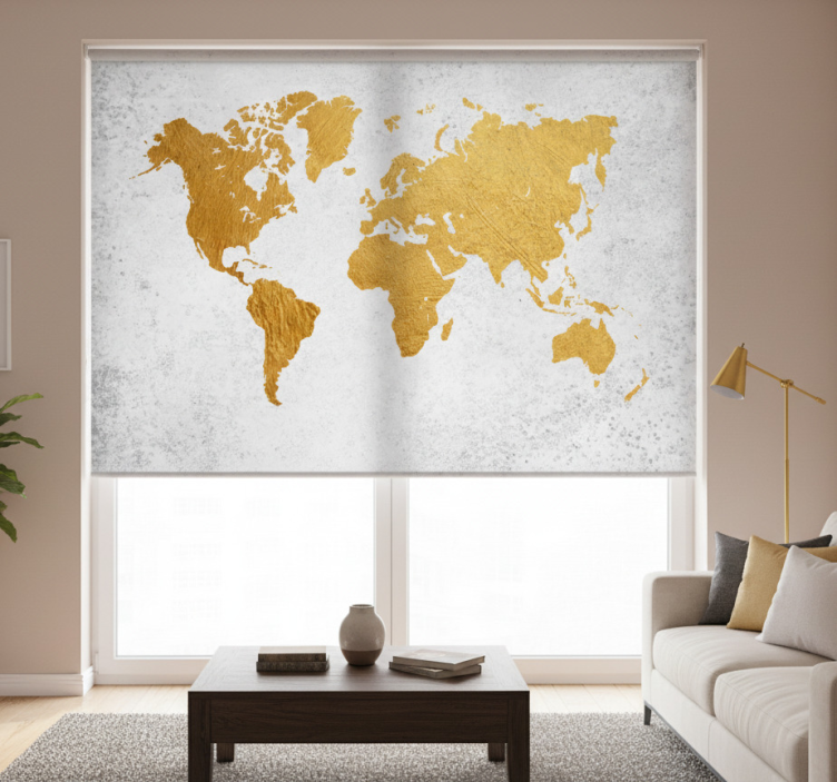 Store enrouleur bureau carte du monde dorée