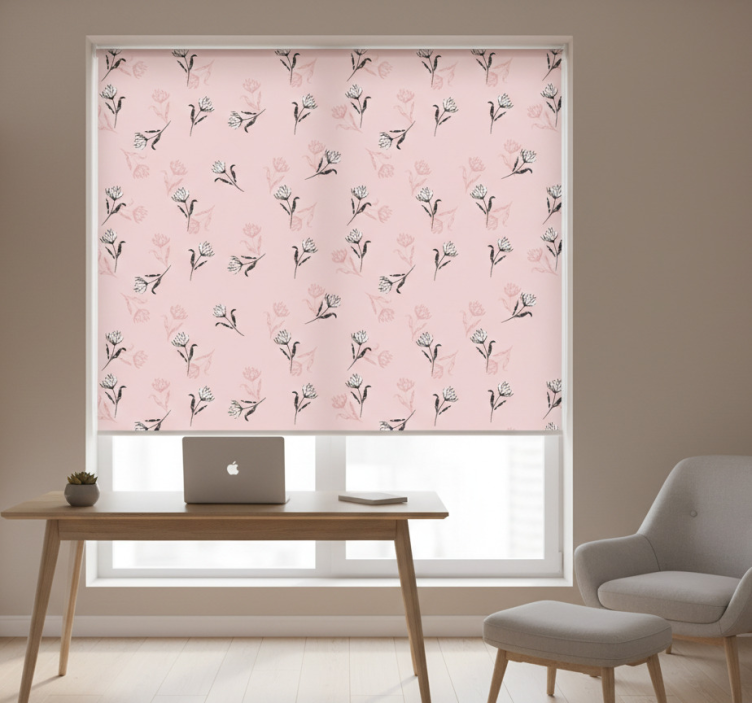 Store enrouleur bureau lys blancs sur fond rose