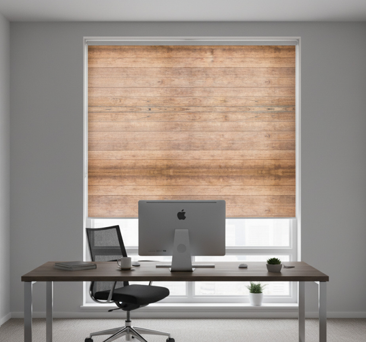 Le store enrouleur bureau planches en bois rustiques horizontales est idéal pour apporter une atmosphère chaleureuse et accueillante à votre espace. En plus de son esthétique, il contribue à créer un environnement propice à la concentration et à la créativité, tout en ajoutant une touche naturelle et élégante à votre décoration. Faites de votre bureau un lieu où il fait bon vivre !