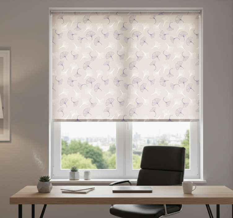 Store enrouleur bureaux feuilles de ginkgo crème