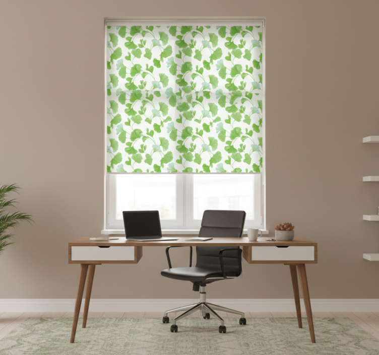Store enrouleur bureaux feuilles de ginkgo vertes