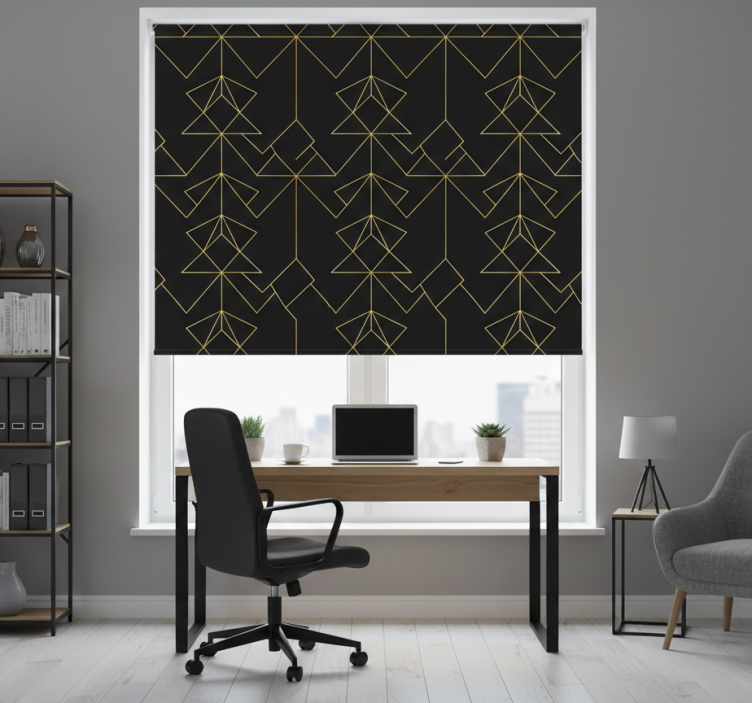Store enrouleur bureaux lignes élégantes noir et or