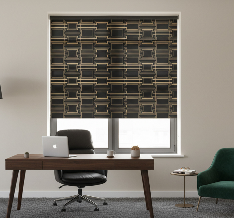 Store enrouleur bureaux motif décoratif cadres dorés