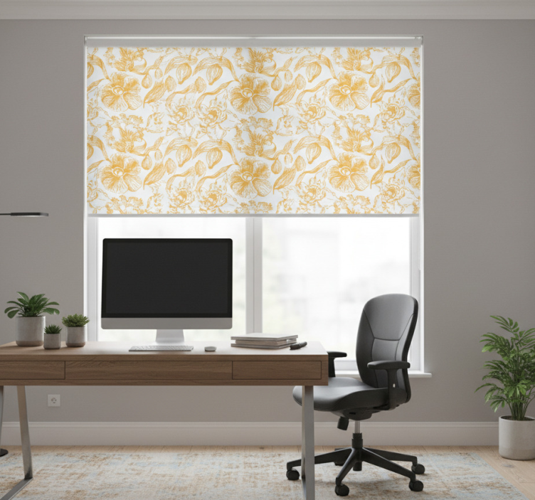 Store enrouleur bureaux motif fleurs d'orchidées jaunes