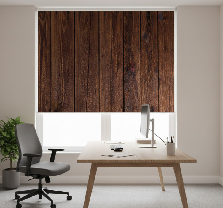 Store enrouleur bureaux planches en bois rustiques marron