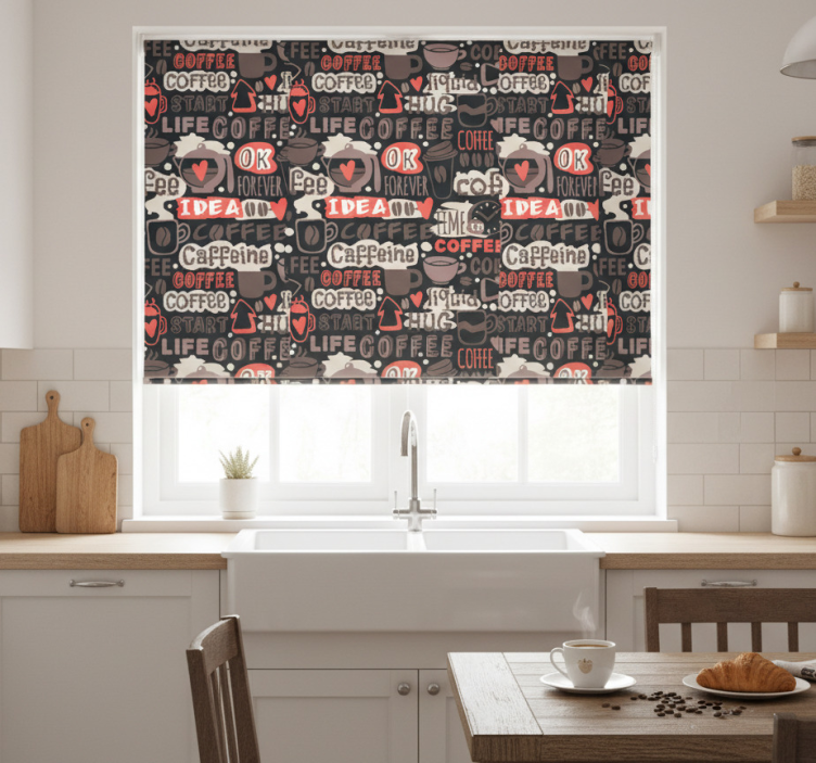 Store enrouleur cuisine motif café typographique