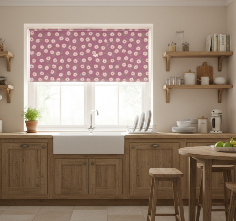 Store enrouleur cuisine motif petites marguerites roses