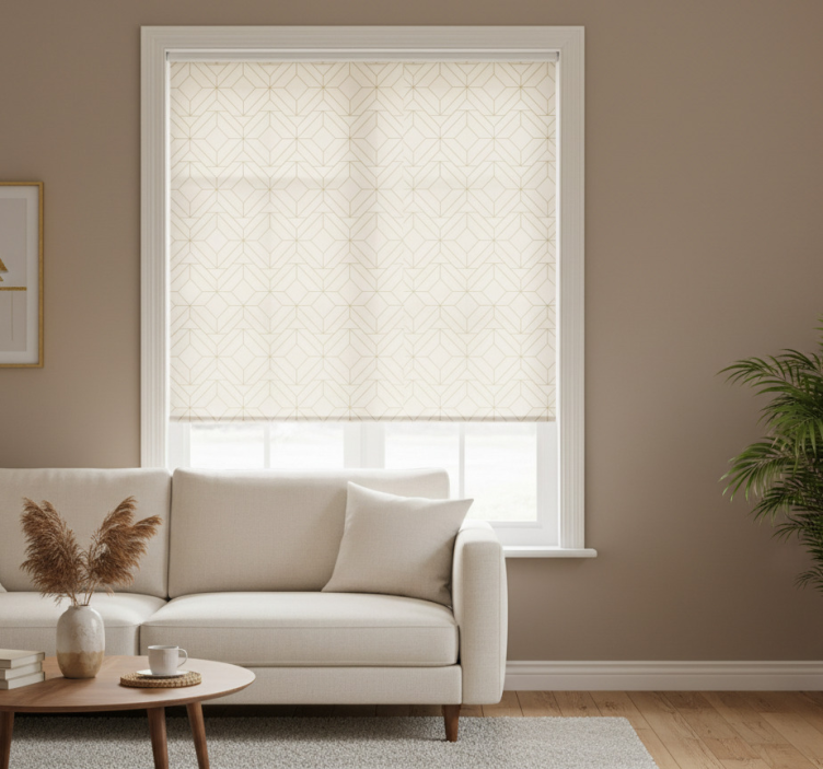 Le store enrouleur moderne est bien plus qu'un simple accessoire, c'est un élément essentiel pour sublimer votre espace. Son motif géométrique et ses lignes dorées créent une ambiance raffinée et inspirante. En plus de sa fonction esthétique, il régule la lumière et assure votre intimité, rendant chaque moment à l'intérieur encore plus agréable !