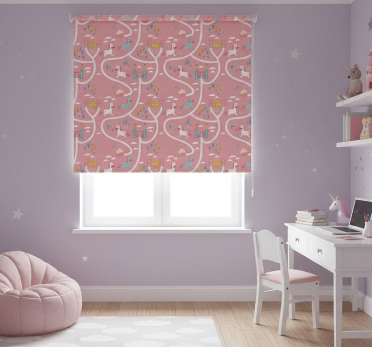 Store enrouleur rose châteaux et licornes