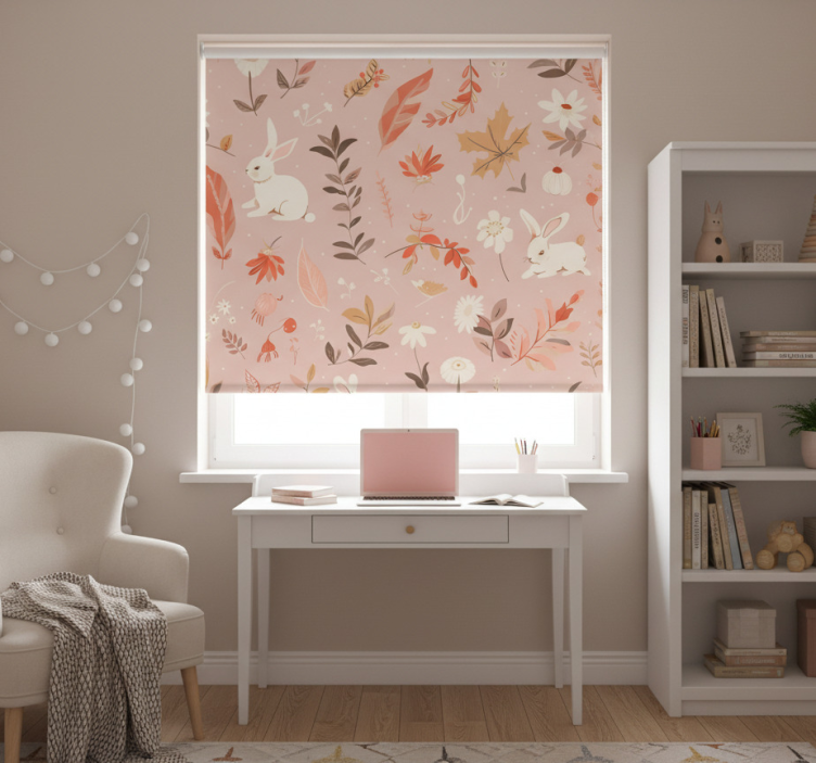 Store enrouleur rose design forêt d'automne