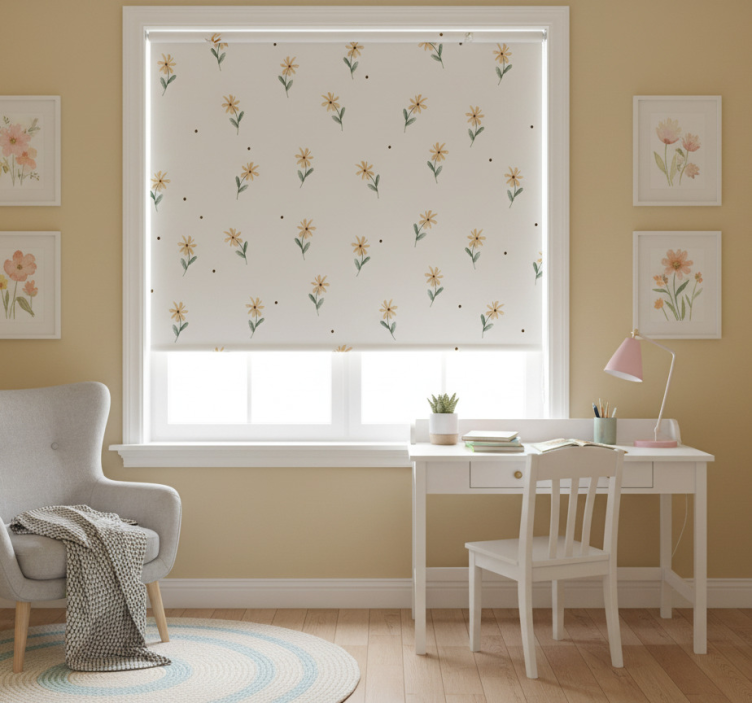 Référence: E8160Apportez une touche de fraîcheur à votre intérieur avec notre store enrouleur rose marguerites jaunes. Ce design pétillant, orné de délicates marguerites jaunes sur un fond rose, évoque la douceur d'un jardin printanier. Chaque regard sur ce store illumine la pièce, tout en ajoutant une note joyeuse et accueillante à votre décoration.