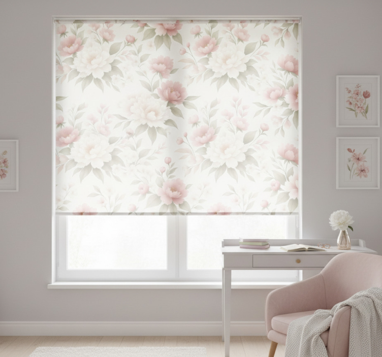 Store enrouleur rose pivoine rose et blanche