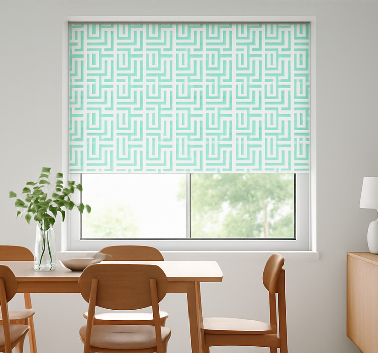 Store enrouleur salle à manger effet carrés géométriques bleus