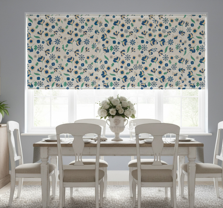 Store enrouleur salle à manger motif floral blanc provincial