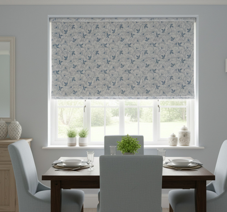 Store enrouleur salle à manger motif floral bleu