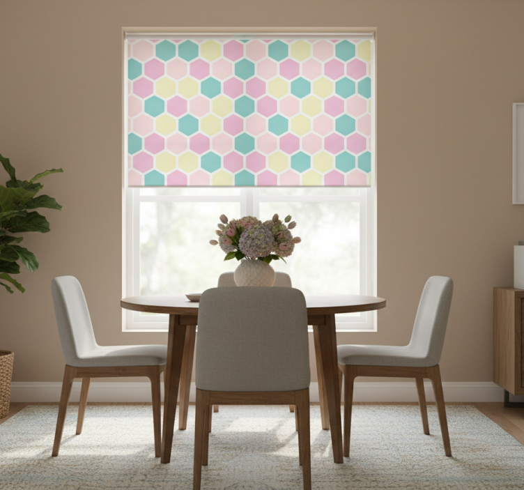 Store enrouleur salle à manger motif géométrique pastel