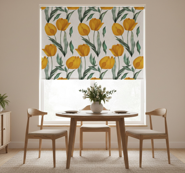 Store enrouleur salle à manger motif peinture tulipes jaunes
