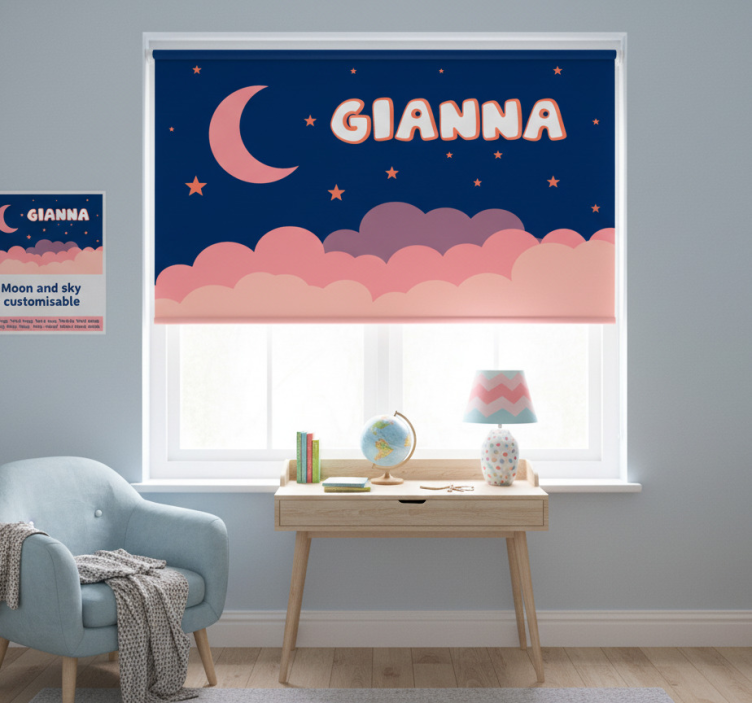 Store enrouleur violet ciel et lune personnalisable