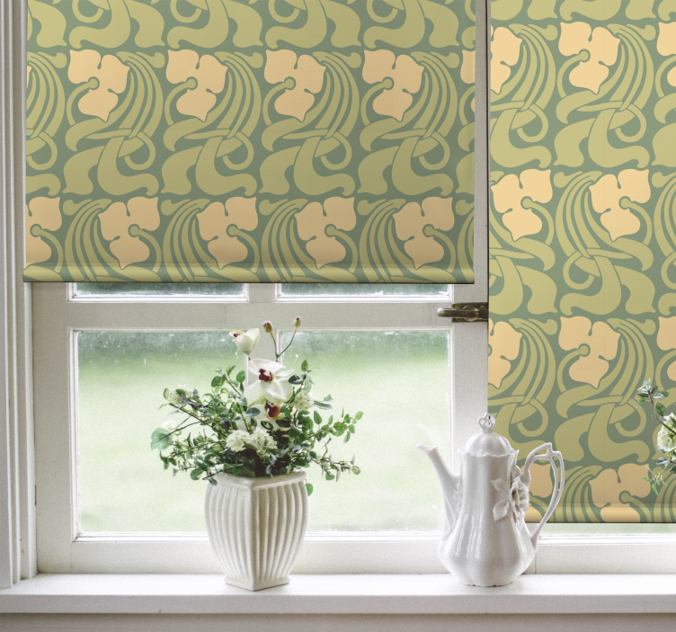 Stores enrouleurs fleurs motif art nouveau vert et jaune