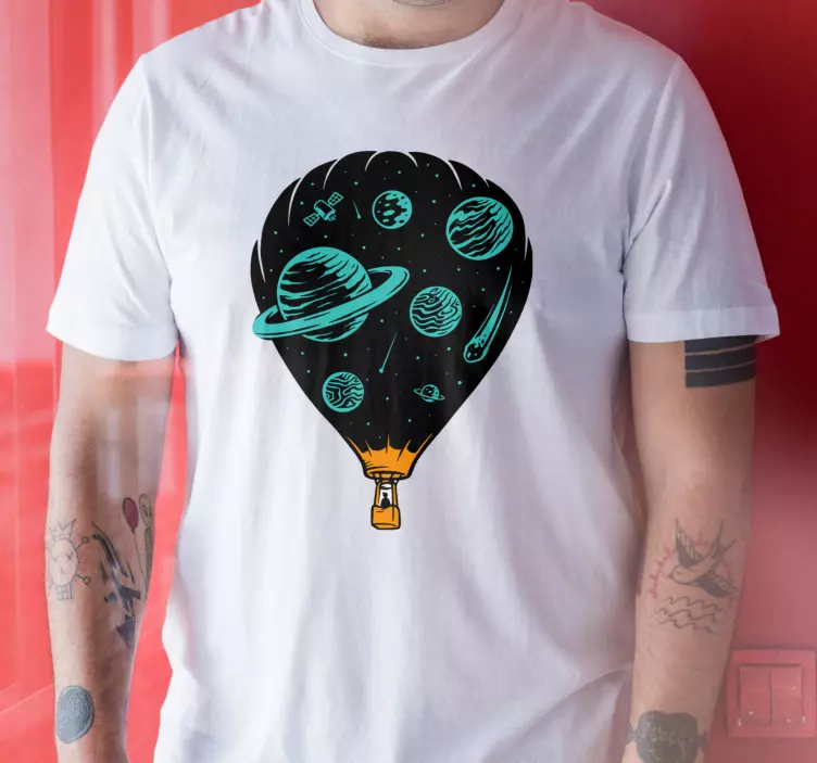 Plongez dans un univers de rêve avec nos T-shirts aventure à travers l'espace ! Chaque pièce arbore un design captivant mettant en scène une montgolfière flottant parmi des planètes colorées, le tout sur un fond cosmique qui évoque l'exploration et le voyage. Cette illustration conceptuelle, à la fois capricieuse et vibrante, invite les passionnés d'espace à s'évader et à rêver de nouvelles aventures galactiques !
