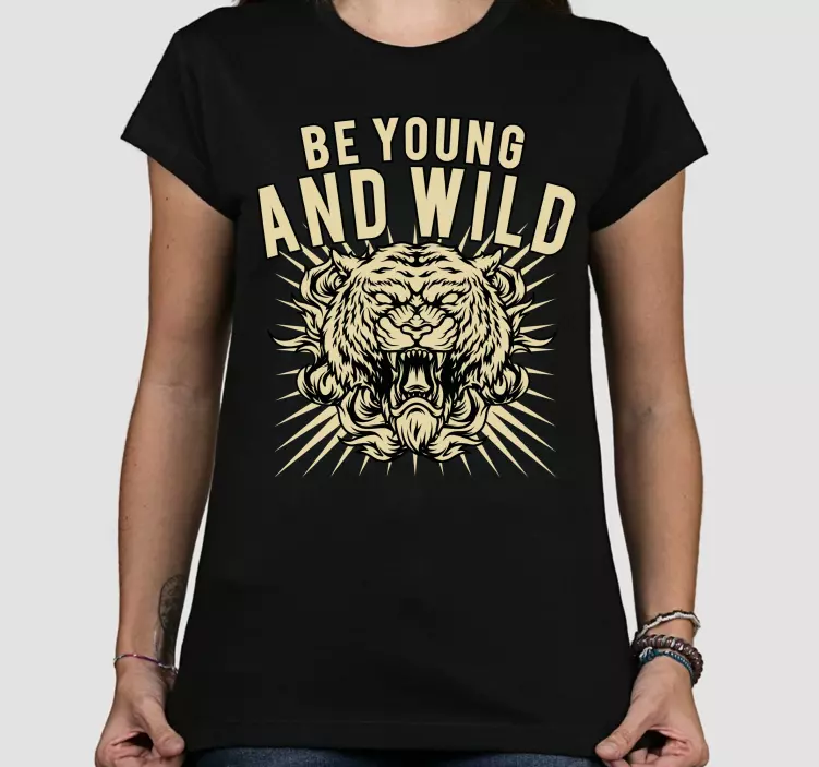 Référence: T4848Ce design présente une tête de lion puissante avec une typographie audacieuse mettant en avant la phrase 'Be Young and Wild'. L'expression féroce du lion transmet un sentiment de force et d'aventure, ce qui en fait un choix frappant pour les personnes souhaitant exprimer leur côté sauvage.