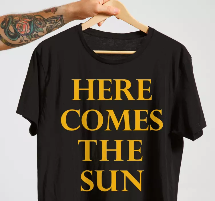 Découvrez notre T-shirt ici vient le soleil, une pièce audacieuse et moderne qui allie élégance et motivation. Ce design captivant arbore des paroles de chanson inspirantes, un soleil rayonnant, et un texte qui célèbre la musique et les musiciens. Avec ses couleurs noir et jaune, ce t-shirt est parfait pour ceux qui veulent se démarquer tout en exprimant leur passion pour la musique.